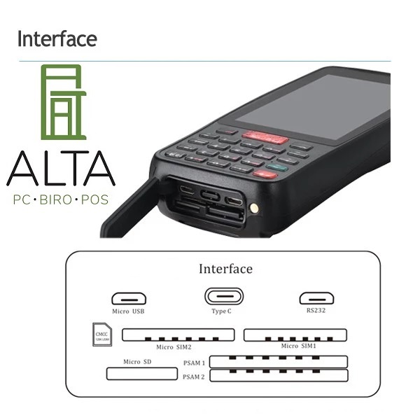 -Priklopi: Micro SIM*1/PSAM*1/TF card *1/RS232*1/Type-c*1