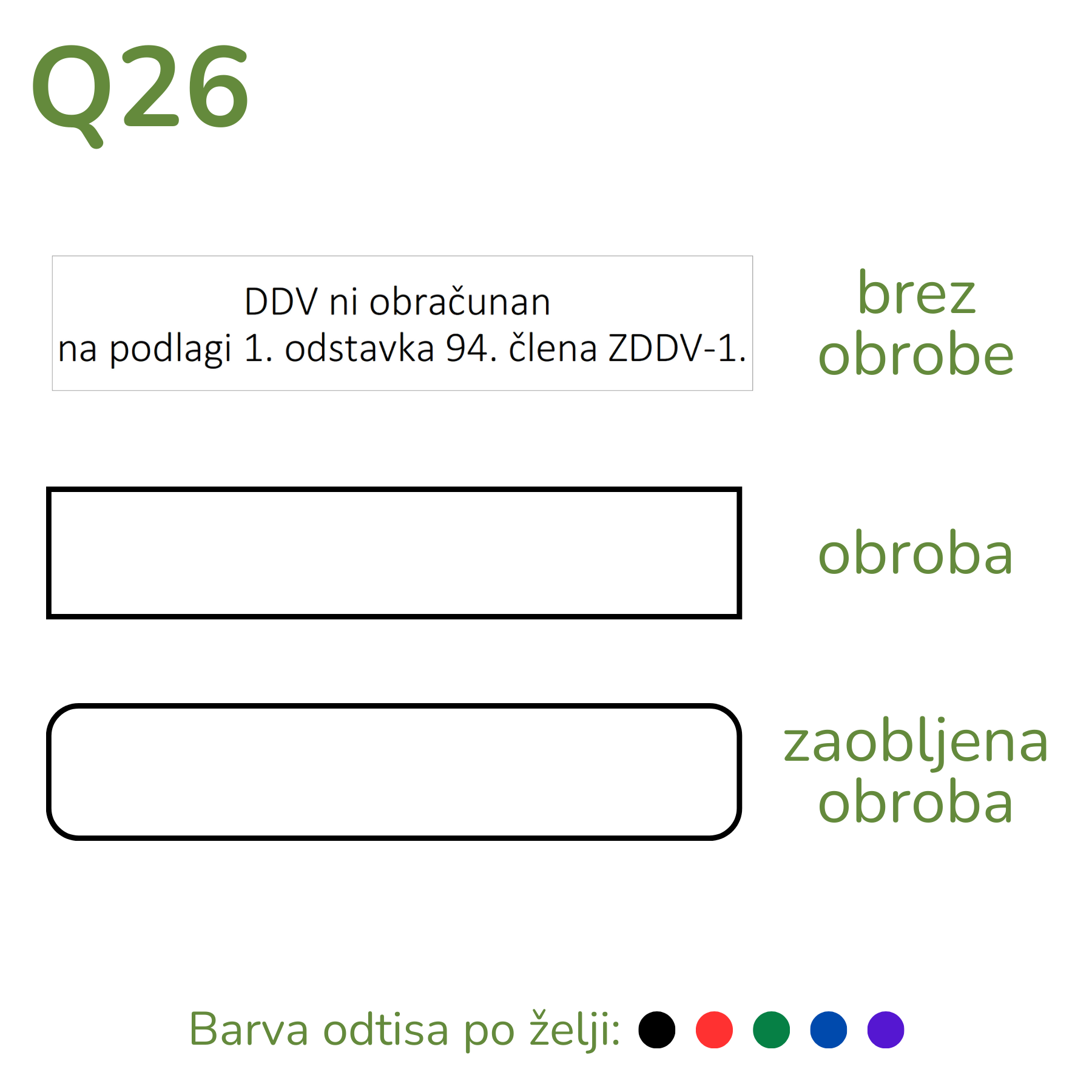 Žig z napisom DDV ni obračunan na podlagi 1. odstavka 94. člena ZDDV-1 vam prihrani čas pri pisanju.