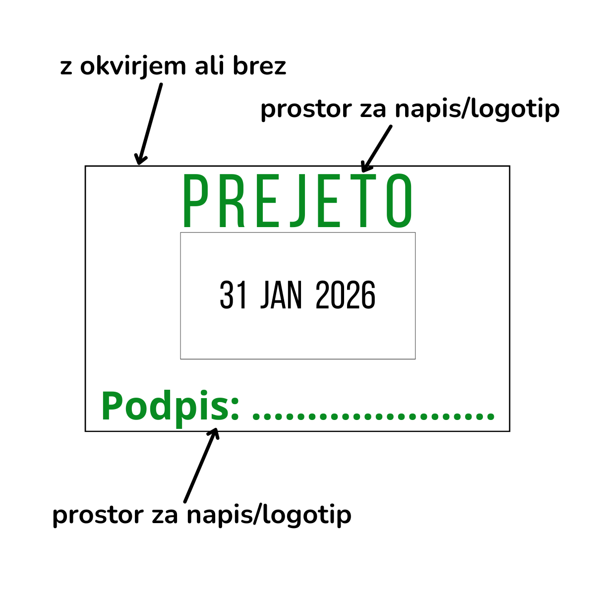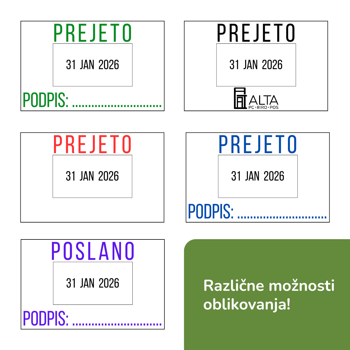 • poleg datuma je lahko tudi napis in/ali logotip podjetja